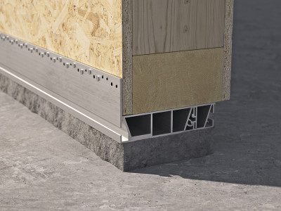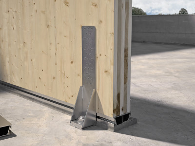ALU START 型材消除了木面板与混凝土下部结构的接触,确保了建筑与地面连接时免受因毛细作用而渗入潮气的影响,并同时确保了优异的耐久性。利用专用装配模板,很容易调节支撑面高度。整个建筑“找平”简单、精确、快速。借助单法兰,可使用钉子或螺钉将型材紧固到木墙体上,从而保证在所有载荷方向都能获得经 CE 认证和符合 ETA 标准的卓越强度。它是首款无需使用压具和抗剪直角托架的地面连接系统。ALU START 系统由铝合金制成,可与 CLT 墙体或木框架施工系统一起使用。