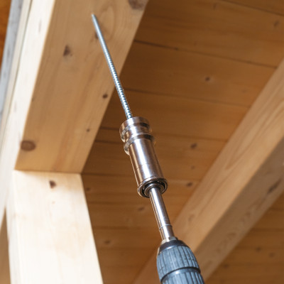 更大的型号CATCH L 可与Rothoblaas Ø10-12 mm沉头半螺纹螺钉(HBS)和Ø11-13mm沉头全螺纹螺钉(VGS)匹配。这款工具适用于所有配备 SW 11 六角套筒的标准充电电钻。